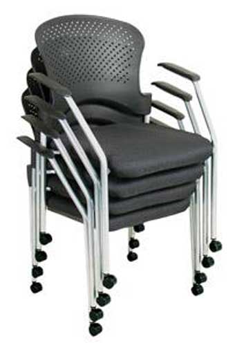 New Furniture – 2894 Arc Series Stackable Chair with Arms and Casters (Black/Chrome Frame)