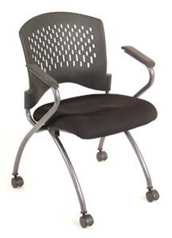 New Furniture – 3094T Agenda Series Nesting Chair with Casters (Black Plastic Back/Black Fabric Seat)