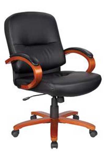 New Furniture – 565 – Black Leather Mid-Back Jr. Executive Conference Chair with Cherry Arms