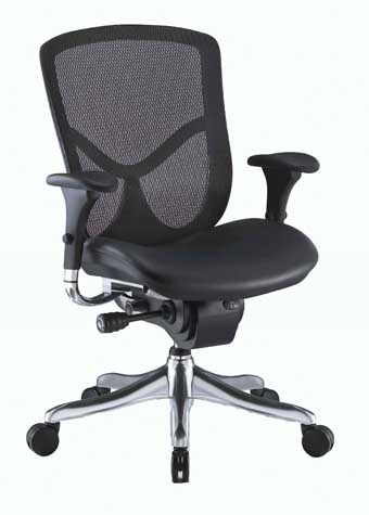 New Furniture – 8721- 45 – Ergonomic Mid-Back Mesh Chair with Black Leather Seat