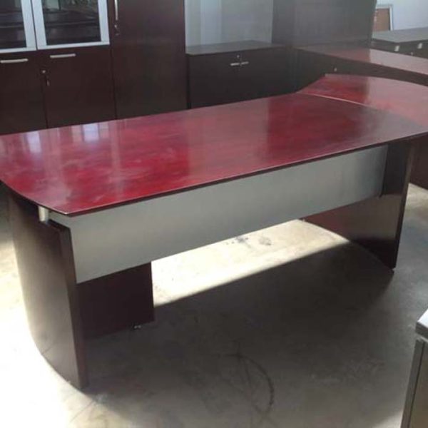 Used Furniture – Napoli Collection Wood Veneer L-Shape Desk (Sierra Cherry)
