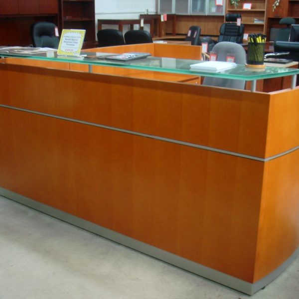 Used Furniture – Napoli Collection Wood Veneer L-Shape Reception Desk (Golden Cherry)