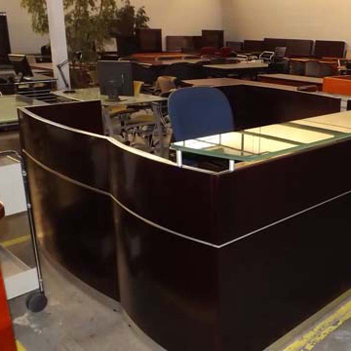 Used Furniture – Napoli Collection Wood Veneer Reception Desk (Mahogany)