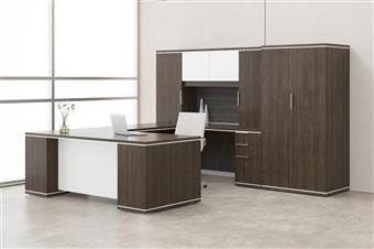 New Furniture – SPX Collection U-Shape Desk with Silver Accents (Black Forest Walnut)
