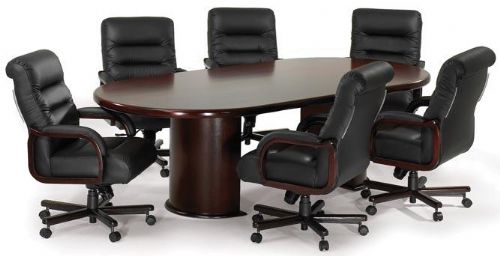New Furniture - Faustino's 8ft Wood Veneer Racetrack Conference Table with Half-Cylinder Bases (Mahogany) Please call 818.763.3470