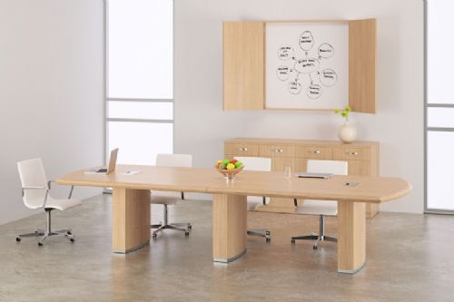 Deskmakers 12 FT Bow End Conference Table in Mapleclick the image to enlarge