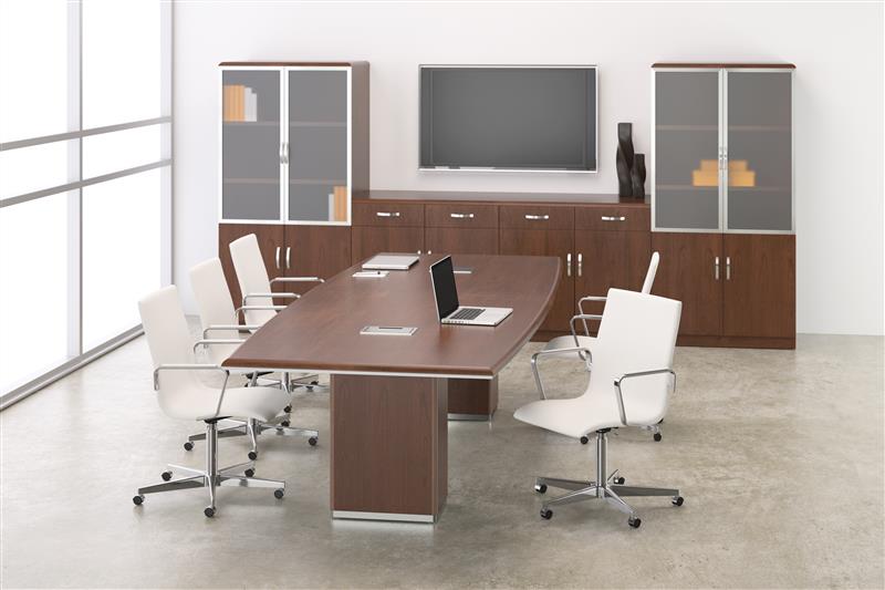 New Furniture - Milano Collection 8ft Boat Shaped Conference Table (Yorkshire Cherry/Silver Accents) Please call 818.763.3470
