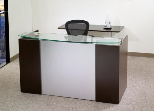 New Furniture - Napa Reception Desk with Metallic Modesty Panel (Java) Please call 818.763.3470
