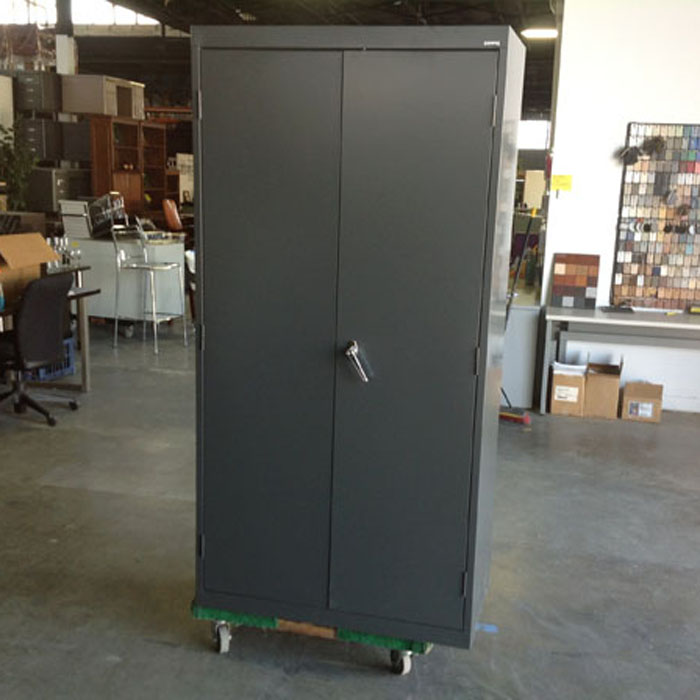 Used Furniture - 2-Door Metal Storage Cabinet -- 72"h x 36"w x 18"d (Charcoal Grey) Please call 818.763.3470